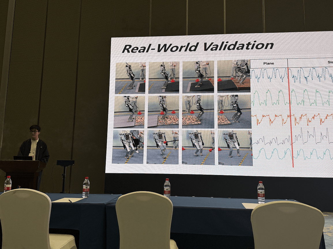 在学术层面,灵宝CASBOT与中国科学院自动化研究所联合提出的研究成果《IDAGC:基于人类意图估计与多模态策略学习的自适应通用人机协作框架》与《TMP:教师运动先验机制提升机器人复杂地形行走能力》均被大会正式录用与展示。前者通过意图识别与多模态策略学习,提升了机器人在人机协作场景下的自适应与安全性;后者通过生成学习与运动先验优化,增强了机器人在复杂地形下的平衡与能效表现。