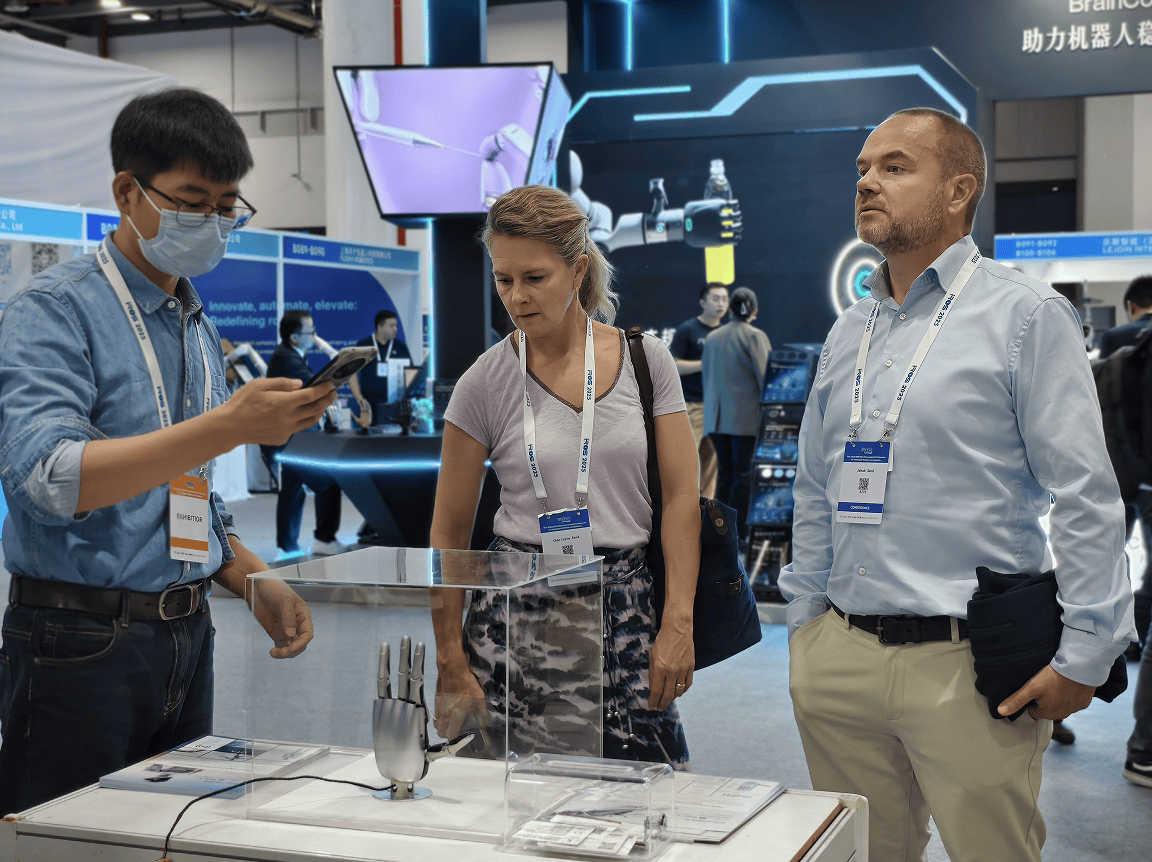 在主会场展区,全尺寸双足人形机器人CASBOT 02与高集成度通用轻量版灵巧手CASBOT Handle-L1成为现场焦点。两款展品从结构设计到感知交互,体现了灵宝在“科研—产品—落地”路径上的系统性成果。CASBOT 02具备37个自由度与多模态感知系统,可实现自然站立与动态平衡控制,展现了结构与决策层面的优化能力;CASBOT Handle-L1采用仿生五指结构与轻量化方案,兼顾高负载与柔性抓取,为具身机器人提供了更丰富的操作延展性。展会期间,CASBOT 02还参与了由大会组织的机器人巡游与集体展示环节,与来自全球的多款机器人同台亮相,展现出中国人形机器人在控制稳定性与交互表现上的进步。